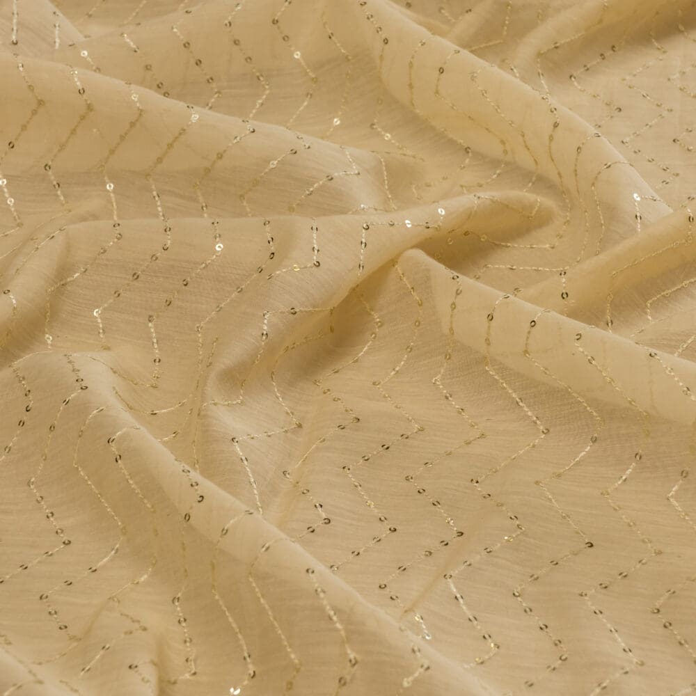 Discover the elegance of our Munga Silk Embroidery, showcasing intricate embroidery with mirror work. Fashioned from pure silk, this fabric exudes opulence, ideal for enhancing the sophistication of sherwanis and similar refined garments. The delicate interplay of lines and geometric elements adds a distinguished flair, ensuring a tasteful aesthetic for formal occasions. With its premium quality and understated charm, this fabric caters to discerning individuals seeking refined elegance and superior craftsmanship.